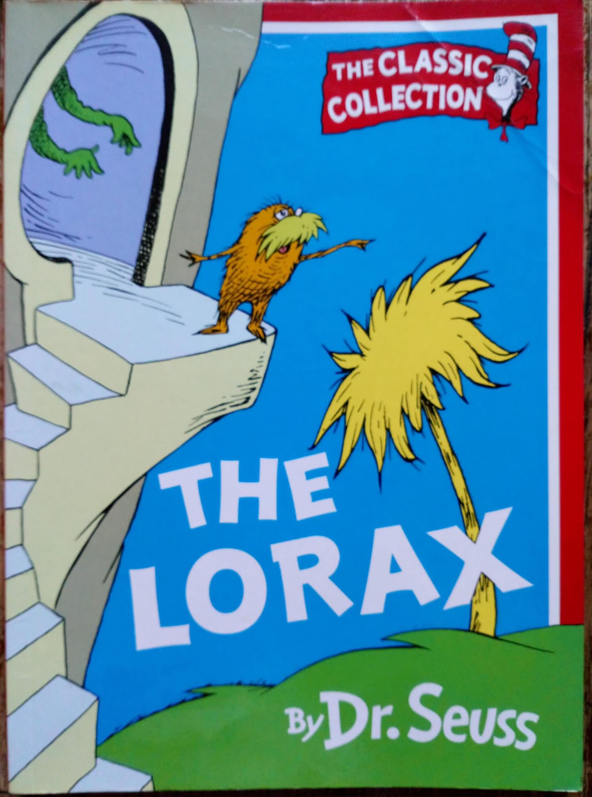 The Lorax by Dr Seuss. Did you know that this was once banned as it was thought to be against the logging industry... ? Well I guess it is, and the Lorax send us a powerful message about the consequences of cutting down trees. And a message that resonates in these times - the trees can't speak for themselves so we must speak up for them. "I am the Lorax. I speak for the trees, for the trees have no tongues. And I'm asking you Sir at the top of my lungs..." @HarperCollinsUK
