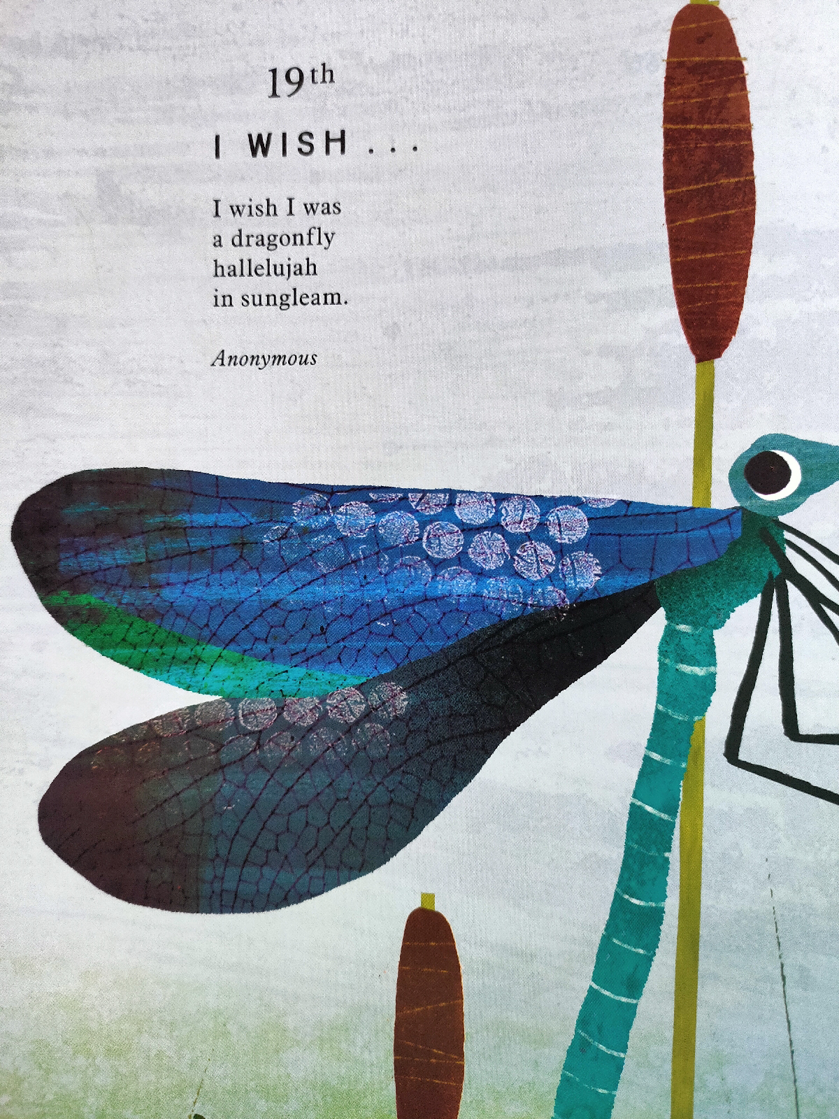 Some Poems for July, from I am the Seed that Grew the Tree, a nature poem for every day of the year, selected by Fiona Waters and Illustrated by Fran Preston-Gannon. Dragonflies, majestic and huge!